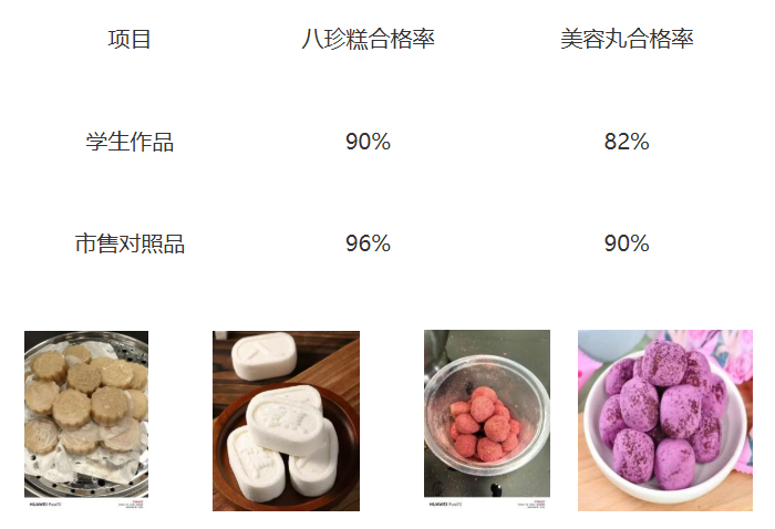 • 当一个个色香味俱佳的八珍糕和养颜丸呈现在大家面前时。看着自己亲手制作的八珍糕和养颜丸,同学们脸上洋溢着满足和自豪的笑容。