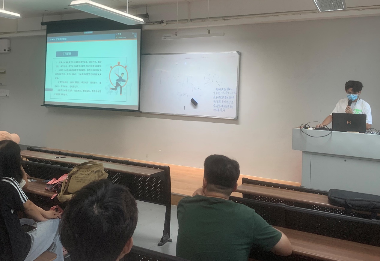 9月7日下午,我校第一届学生教学信息员工作培训会在4教502课室召开。各学院学生信息员代表参会,江门校区以远程视频连线的方式参加。会议由教学质量监控与评估中心分管学生教学信息员工作的梁文熙(实习员)主持。