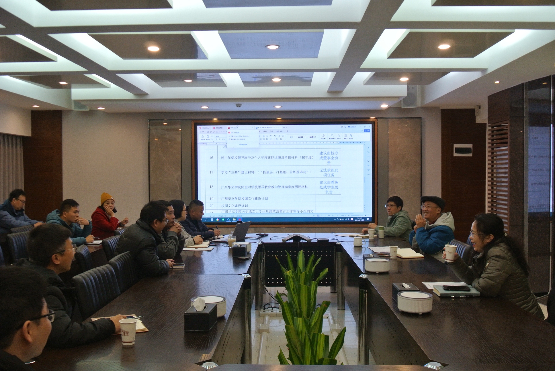 接着党办、人事处、教务处、招生就业处就本部门目标责任书附件目录材料进行说明。其中人事处和教务处涉及支撑材料多,牵涉部门多,建设任务最为繁重,需要召开专题会议逐条进行分析和明确;与就业相关的材料主要涉及师资人事管理,也将召开有人事处参加的专题会议才能解决。与会人员还就资产统筹管理、教学条件保障、部门间协调等问题提出了很多富有价值的建议。
