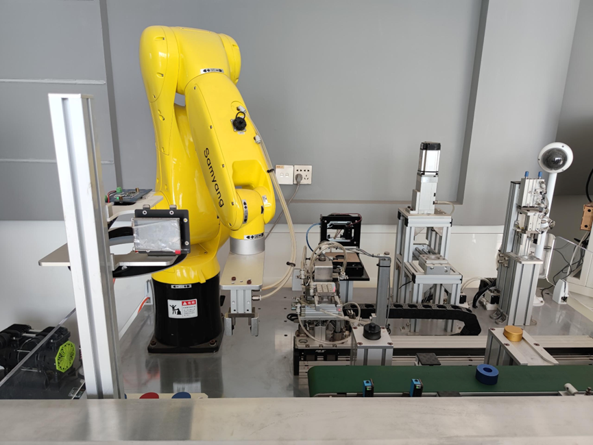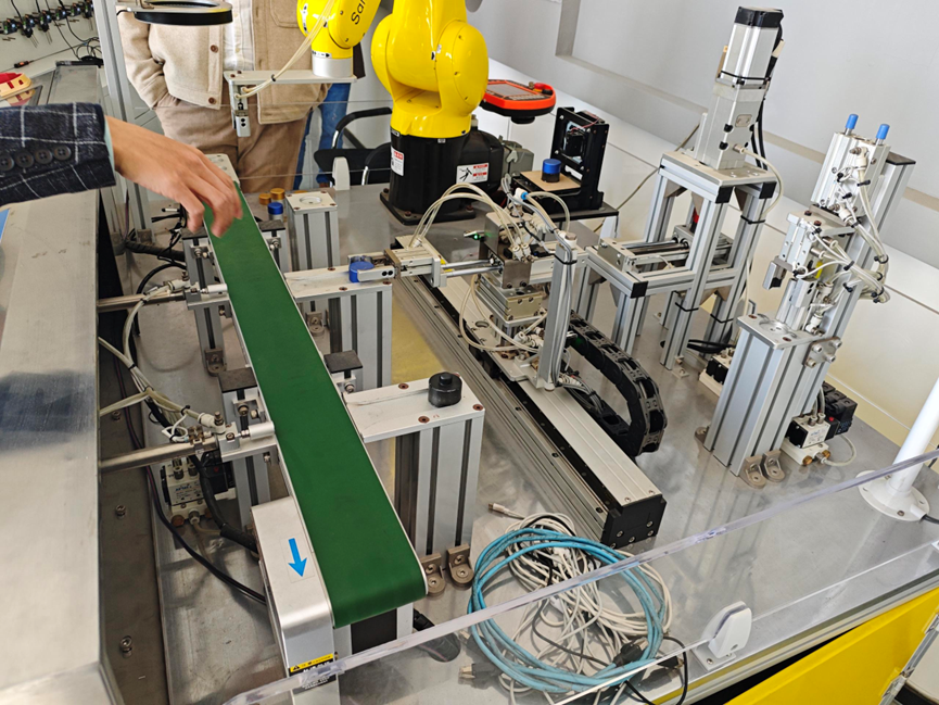 在参观环节,信盈达的练工带领师生们参观了公司多项高科技平台和技术。首先,练工介绍了基于ARM处理器的AI机械臂实验平台,该平台的成本相较于传统PLC方案大幅度降低,且具备强大的图像识别能力和高度灵活性,能够满足定制化的柔性制造需求。此技术的应用,大大提高了生产线的灵活性和效率,适用于多个客户的定制化生产。