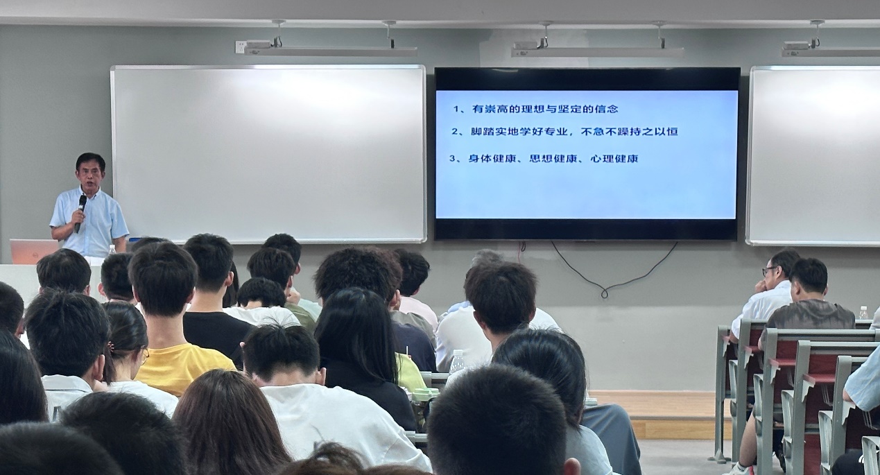 随后,由智能科学与工程学院院长孔锐教授发言。孔院长用通俗易懂的方式,幽默风趣的风格,让新生们初步了解智能学院的学习基础,从通信到人工,从学分到考试,从上课到竞赛,让新生们渐渐找到学习的方向和目标,收获满满。发言尾声,孔院长不忘督促生学会自我管理,自觉主动去学习,能够合理规划大学生活。鼓励生制定符合自身发展需求的学习计划和目标,督促大家养成健康的生活习惯。