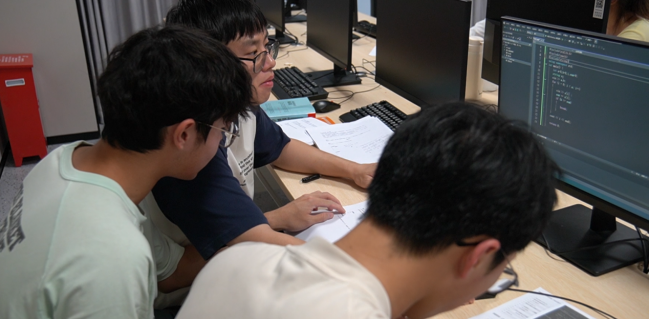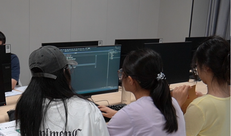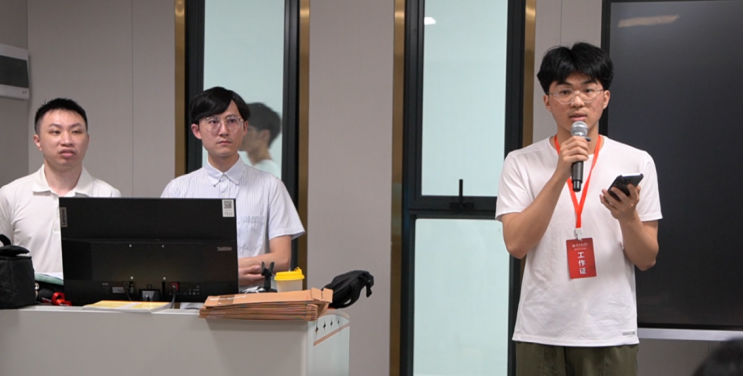 随着首支队伍率先完成程序验证,赛场上的“沉默”终于被打破;随后多支队伍陆续突破,赛场气氛逐渐升温。选手们时而因思路受阻皱眉思索,时而因代码调试成功击掌庆祝,充分展现了“沉浸式”编程的魅力与团队协作的智慧。