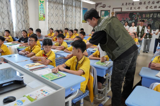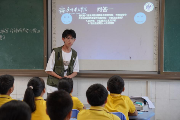 这位曾投身军旅的退役志愿者,结合在军队服役期间积累的独特经历,从国防信息安全的专业视角出发,生动诠释了信息安全在我国国家发展、安全稳定等方面的重要战略意义,为六年级的学生们带来了一场有趣且深刻的精彩分享。