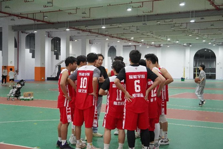 比赛开始前,双方队员都进行了充分的热身活动,展现出高昂的斗志和饱满的热情。他们通过拉伸、运球、投篮等一系列动作,为即将到来的激烈对抗做好了准备。热身结束后,我院篮球队指导老师郭泽辉和教练刘栋老师对队员们进行了精心的指导和鼓励,他强调了比赛中的团队配合和战术执行的重要性,同时也鼓励队员们放平心态,享受比赛的过程。