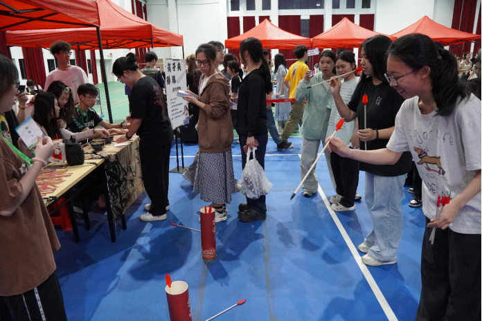 2025年4月17日晚,江门校区第一届校园文化节于文体楼二楼盛大启幕。本次活动以“传承千年智慧,弘扬传统文化”为主题,江门校区各独立学院均设有摊位活动,引领同学们领略中华传统文化的独特魅力。活动现场,智能科学与工程学院精心筹备了两个传统游戏摊位,设有筷子夹弹珠、投壶添福等趣味项目。随着最后一支箭矢精准入壶、最后一颗弹珠稳落瓷碗,这场洋溢着古韵与活力的文化盛宴圆满落幕。让我们一同回顾那些令人难忘的精彩瞬间!