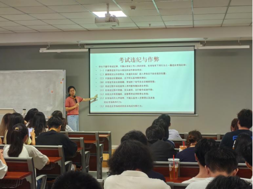 会上,肖老师对考试违纪和作弊的认定情形进行了讲解。并依据学生的过往违规情况,对严重警告、记过、留校察看等不同情节的考试违纪处分进行了说明。肖老师强调,考试不仅是对知识的检验,更是对个人品德的考量,以此呼吁全体学生坚守诚信底线,自觉抵制舞弊行为,共同维护考场的公平正义。