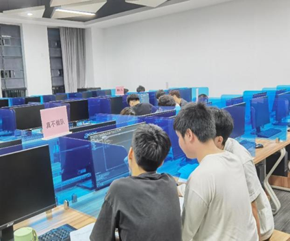 比赛过程紧张激烈,每位学生都全神贯注地投入其中。随着时间过去,一些队伍在屏幕上建出了复杂精巧的程序架构,显示出卓越的编程能力和很强的逻辑思维。竞赛后半段,参赛选手更是争分夺秒地解题。