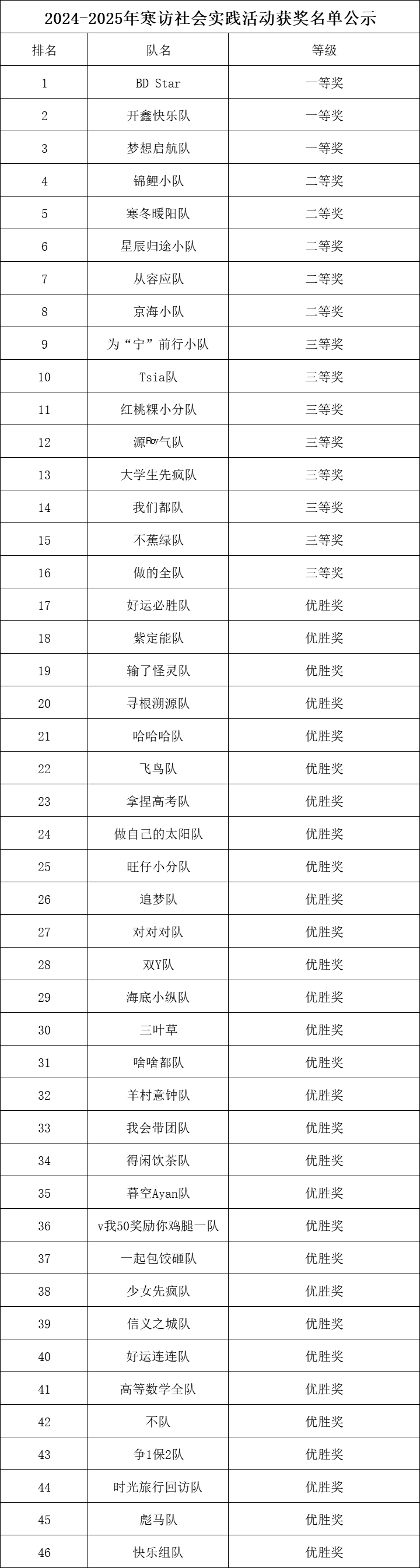 为增强学校影响力,表彰在寒访社会实践活动中表现优异的队伍,根据《关于举办2024-2025学年寒访社会实践活动的通知》《2024-2025学年广州华立学院寒访社会实践活动评先评选细则》的要求,经评委小组评选讨论,现将获奖结果予以公示。公示日期:2025年5月22-5月25日。