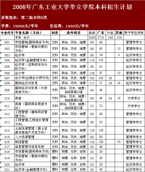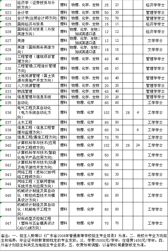 08年广工华立学院招生专业代号及学位类别