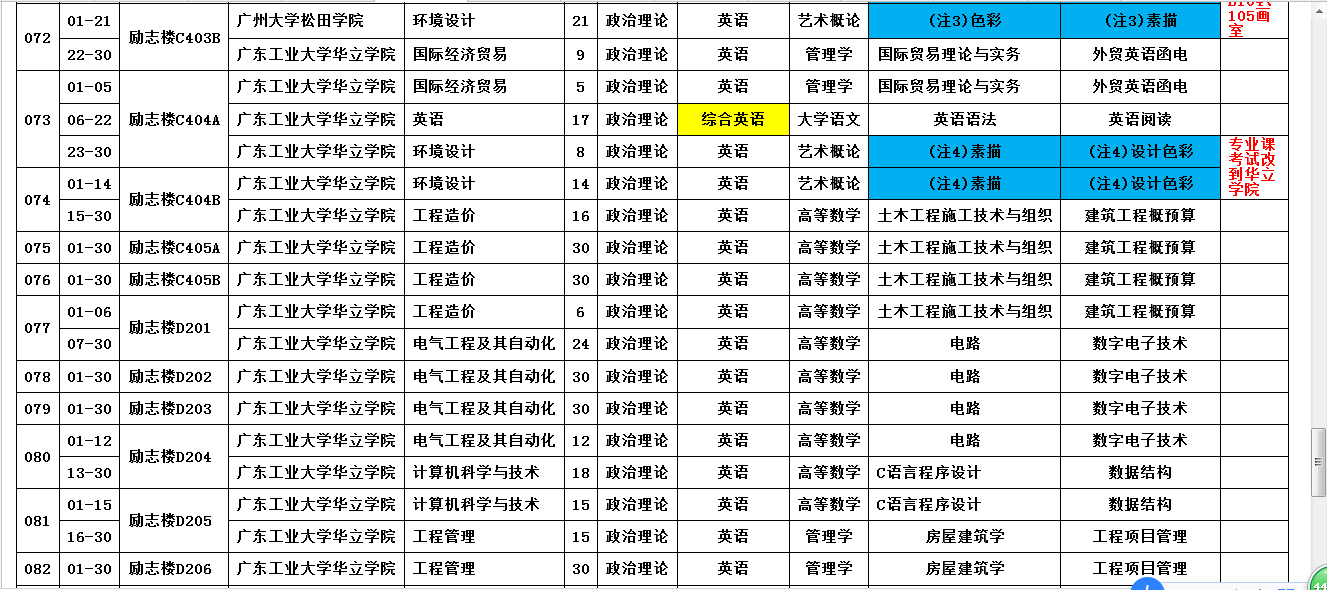 2017年广东工业大学华立学院本科插班生招生考试广东财经大学华商学院考试安排表