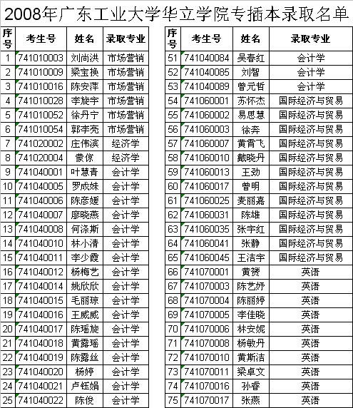 附:2008年广东工业大学华立学院专插本录取名单