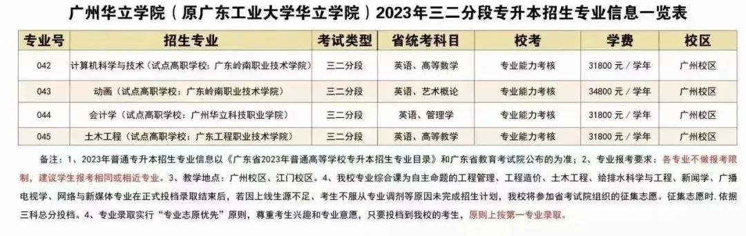 广州华立学院(原广东工业大学华立学院)2023年普通专升本招生专业抢先看! 作者:招生办 发布时间:2022-12-14 00:00:00 浏览次数:次 【字体:小 大】 2023年广州华立学院(原广东工业大学华立学院)普通专升本院校代码:1356报考专业选择多,专业录取有保障 尊重考生兴趣和专业志愿,原则上按第一专业录取 分享到: 【打印正文】